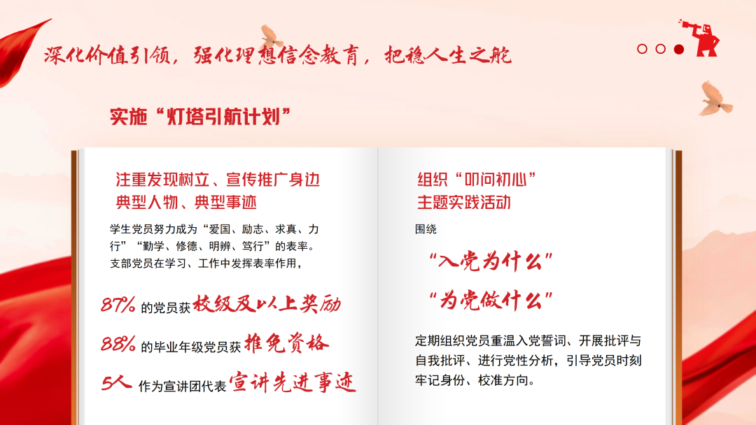 理想信念是青年成长的精神支柱。支部重点实施“灯塔引航计划”,以常态化教育引导党员牢记初心使命。通过深度挖掘支部优秀党员先进事迹,借助主题党日分享、微信公众号线上推送等多种形式,树立起一批“看得见、学得来”的身边榜样,让党员学有标杆、行有方向。