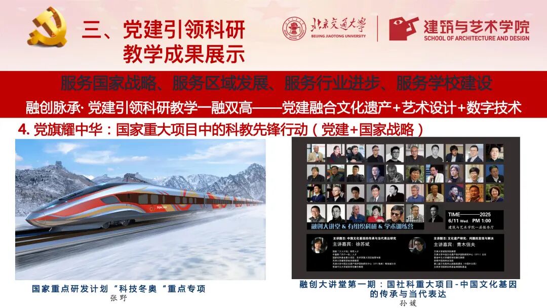 “党旗耀中华”勇担当:主动服务国家战略。创建党建品牌讲座《融创大讲堂》,以教育家精神引领高水平专业化教师队伍建设,以遗产共同体网络重塑师资能力,支撑教育家精神。